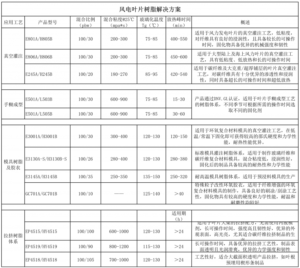 主要為風(fēng)力發(fā)電葉片的主梁、殼體以及葉片模具的生產(chǎn)和制造提供系統(tǒng)的樹脂產(chǎn)品解決方案。